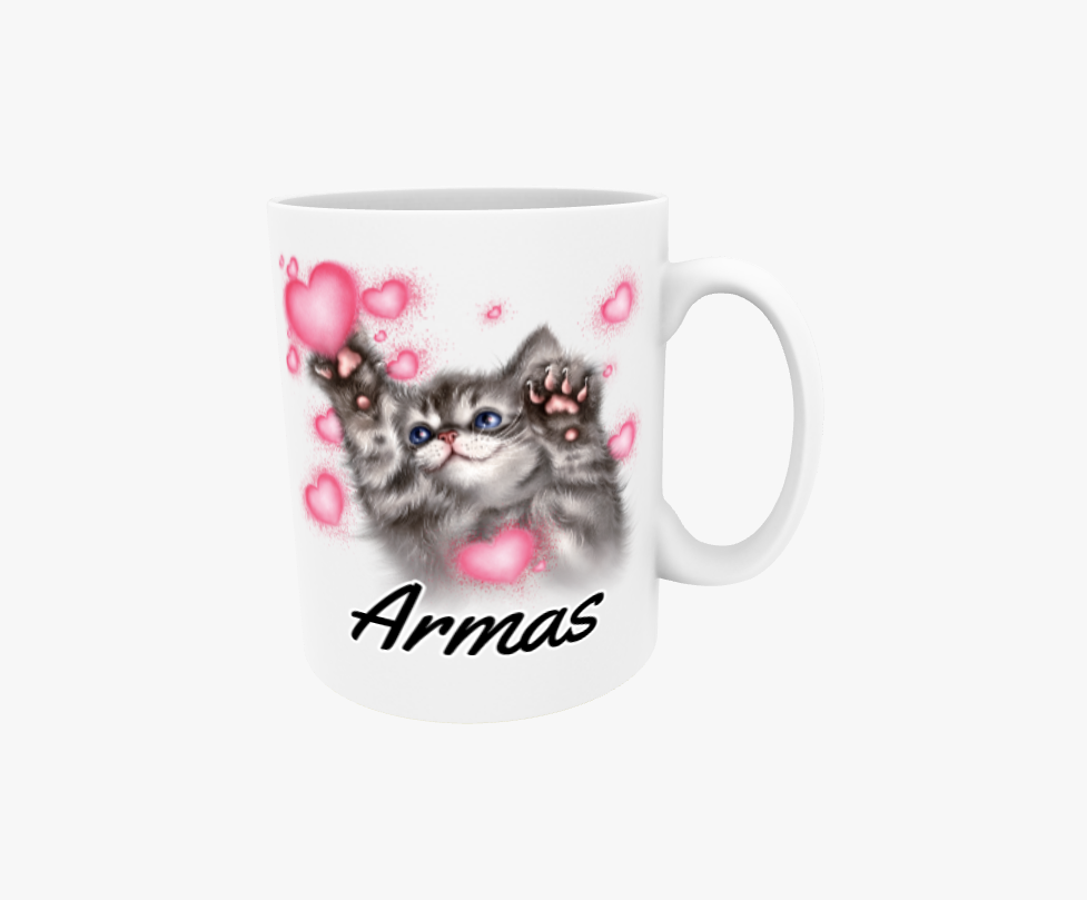 Söt/Grå Kattunge och Hjärtan - Textmugg