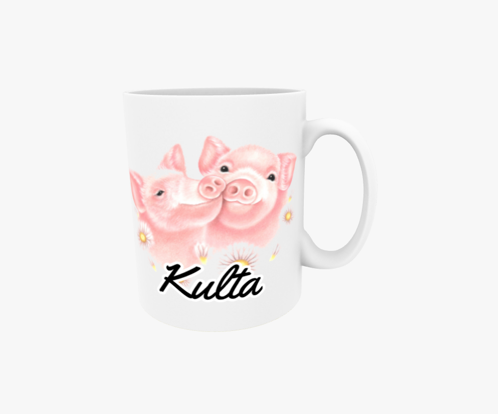 Guld / Grispar och blommor - Textmugg
